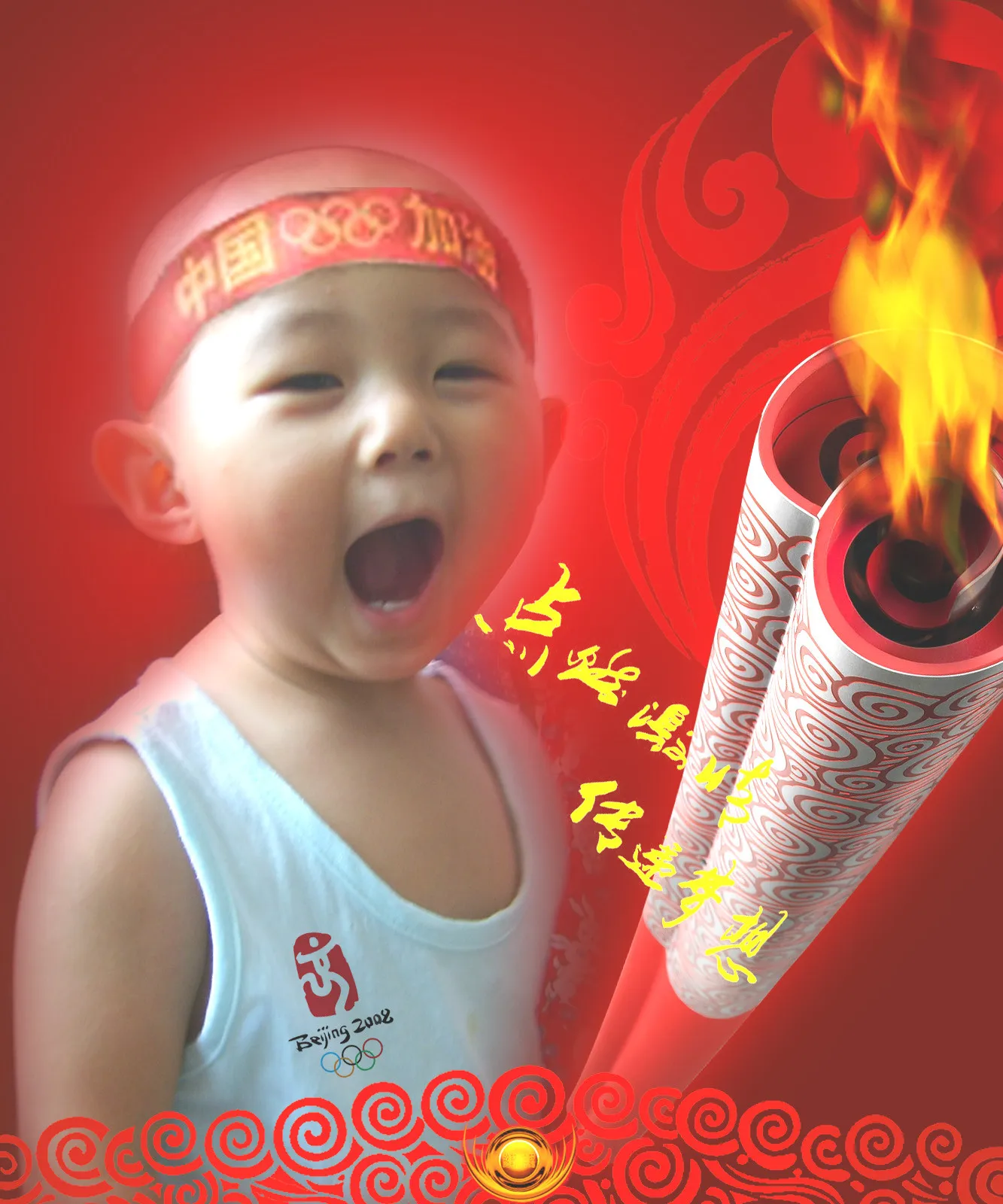 请帮我换个奥运背景,显现出宝宝在为奥运加油! 谢谢