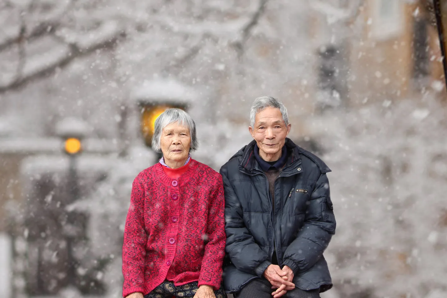 这个背景加的寓意很好啊。。。哎 家里的老人在等待着儿女的归来,风雪中仍点亮的路灯。。看的我好想回家。。