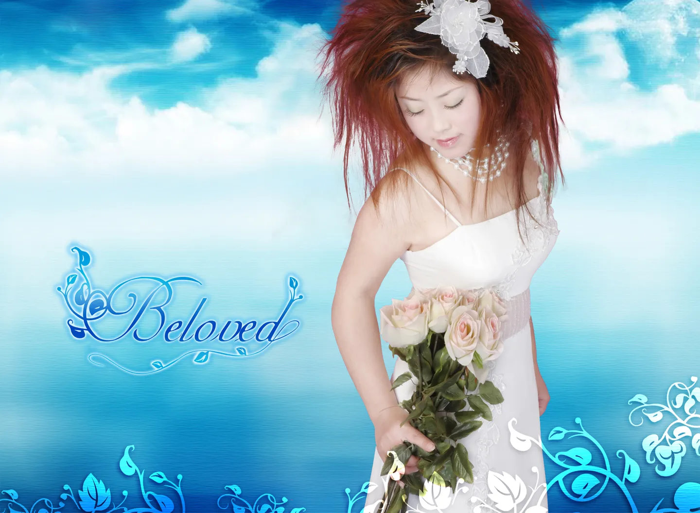 把肤色调亮些,把胳膊和小肚子修一下让看起来消瘦些。背景设计一下! 用途:娱乐 基调:典雅唯美 背景:稍作调整