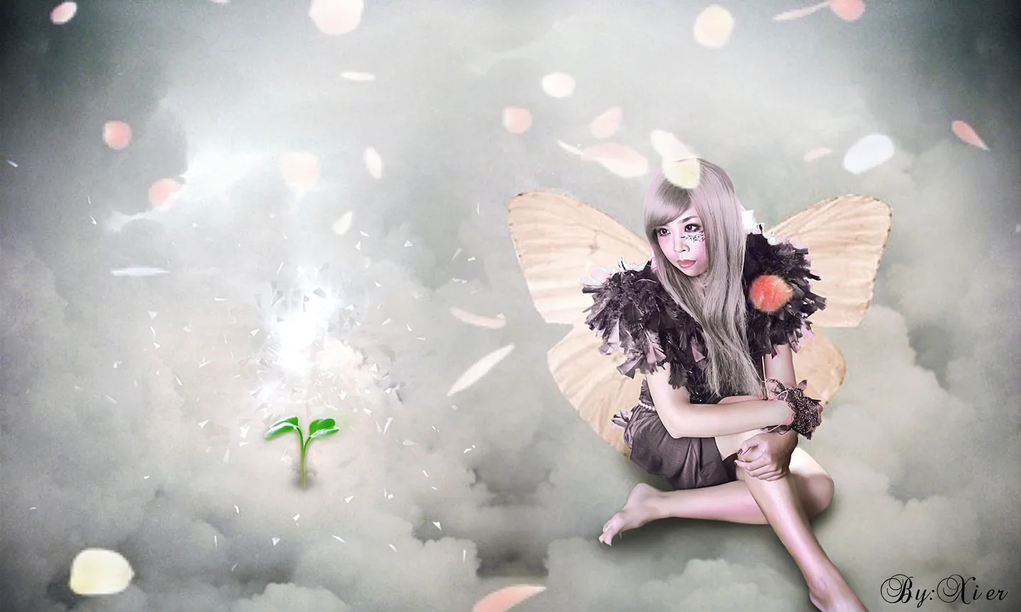素材有:小草 花瓣 碎片 翅膀 天空