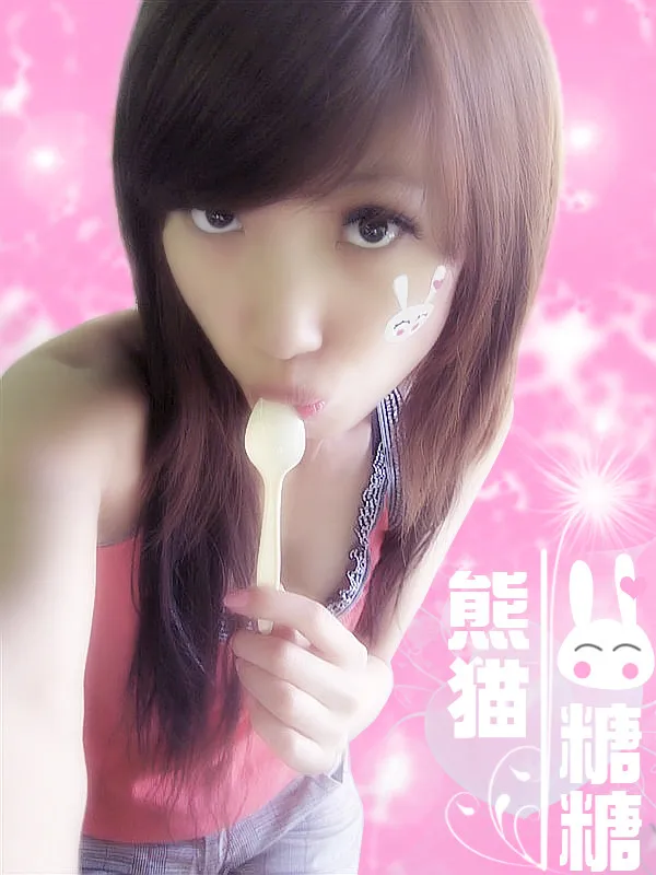 希望能够把后面的凳子给去掉然后帮我修饰一下照片的颜色。然后能帮我写上一些字吗?我叫熊猫。糖糖 谢谢
