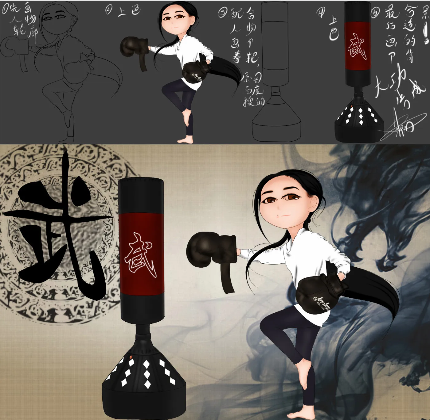 戴上拳击手套之后腾不出手来按了,只能用脚了……