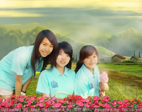 最好能把前面三个人抠出来。。美化一下人物的皮肤,脸部。。换一下背景。。谢谢啦。