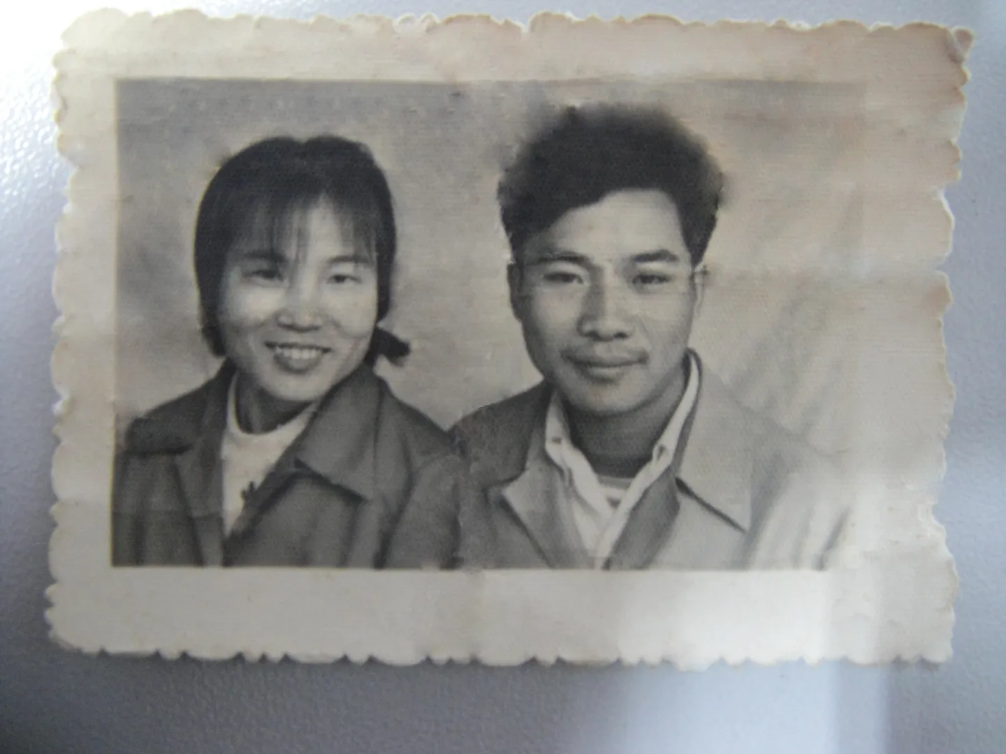 30年前俺爸妈结婚的照片,现在已经破旧不堪了,用数码相机拍的,希望有好心的大师帮忙修复下!可能比较有难度吧~~非常非常希望大师级别的能帮忙哦~~~我想重新洗出相片送给他们~~~千恩万谢啊~~~ 艺术化:保持真实性