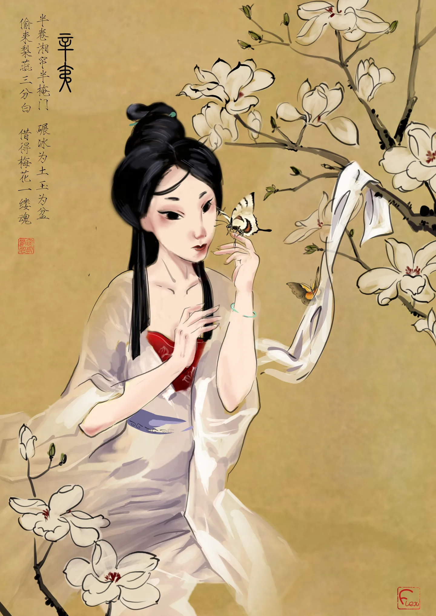 不是吧。。。小山眉、朝云髻,都是中国风呢,更别说还有玉兰蝴蝶,都是中国传统意象