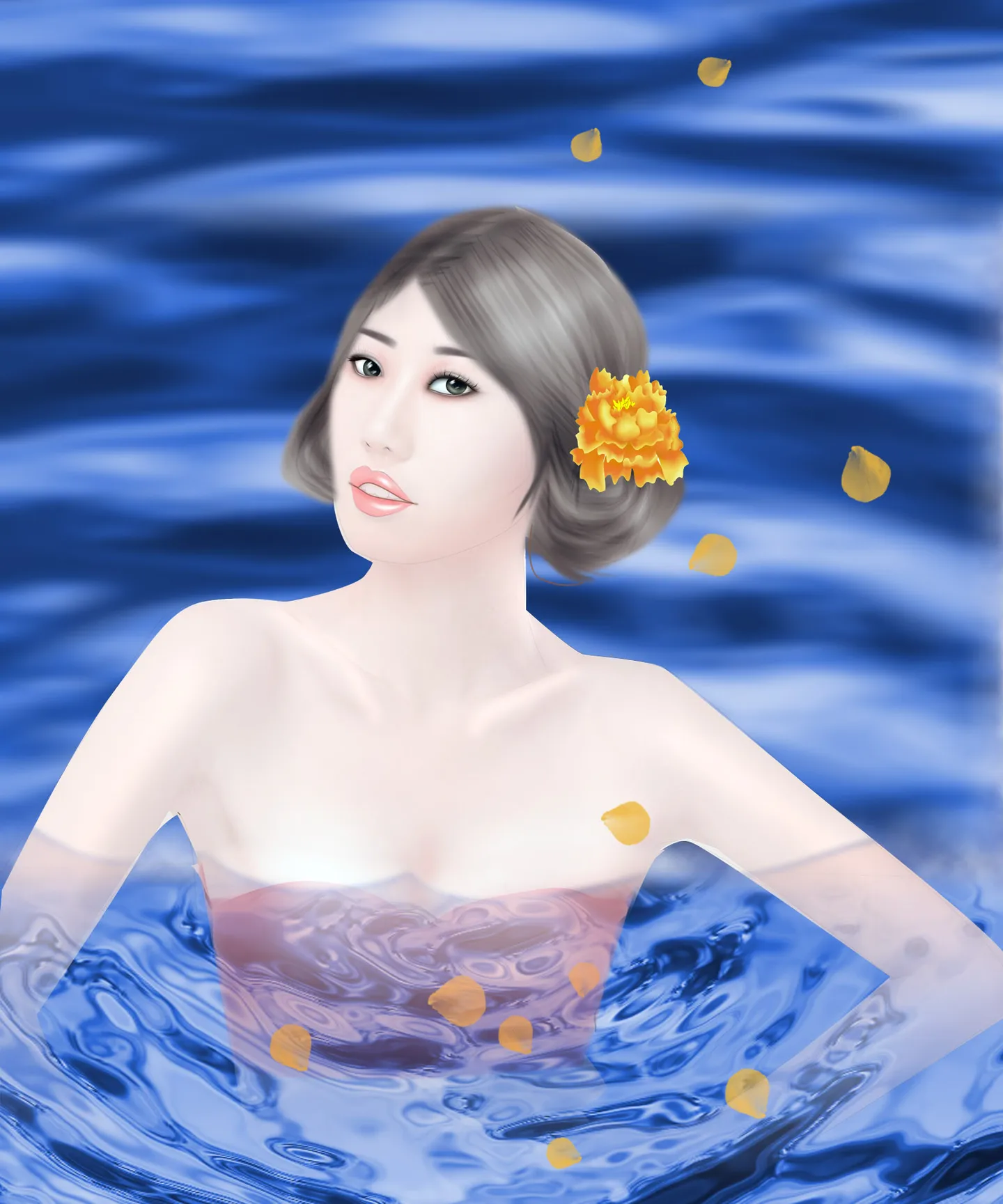 穿这么少海泡在水里,冷啊