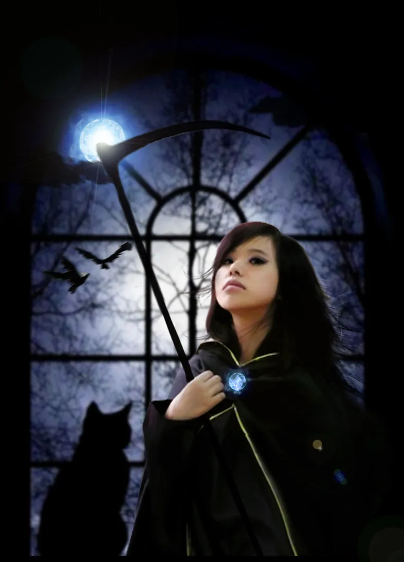 咱是穿着女巫服,拿着镰刀的死神,恩~就是这样