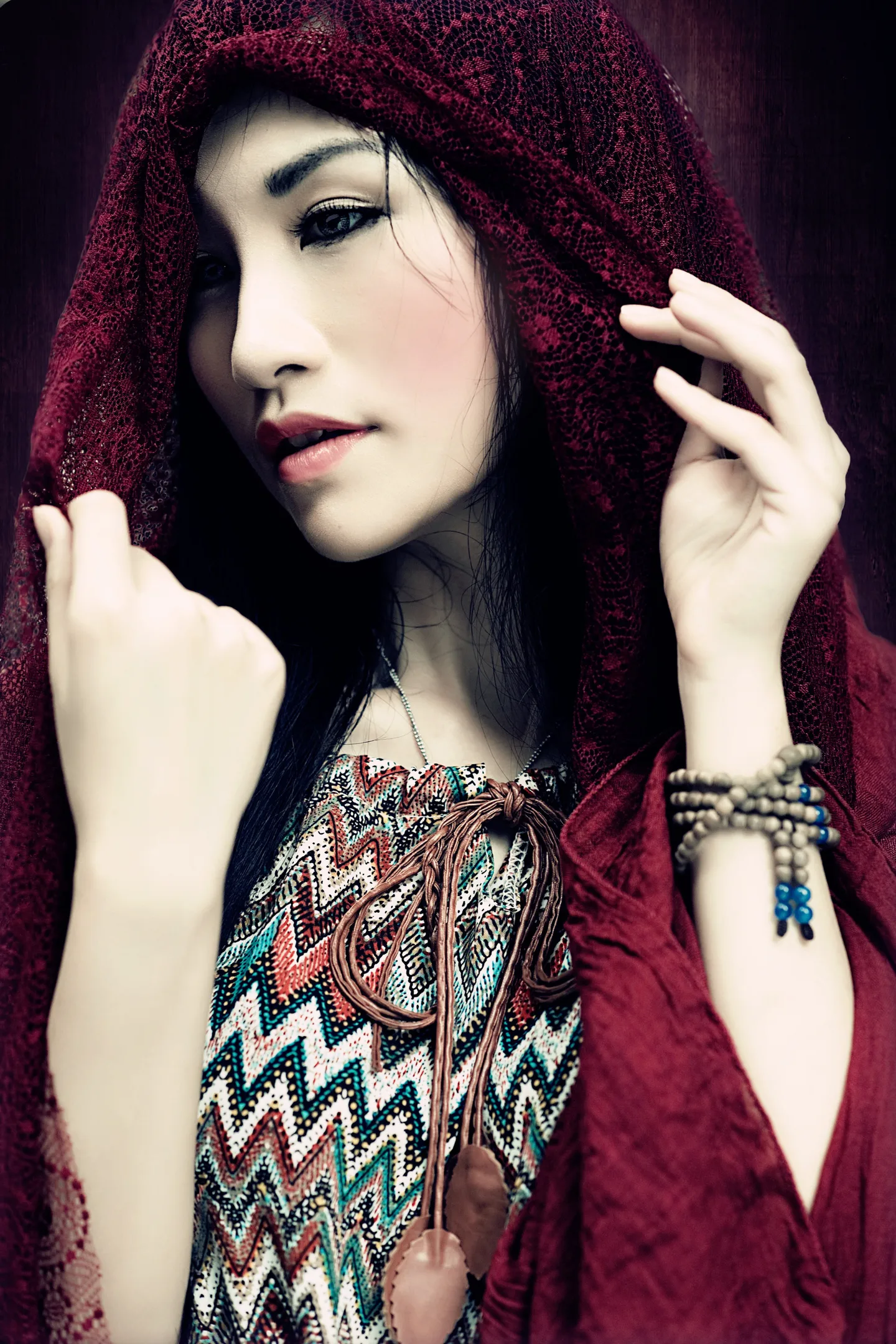 这个色调很时尚复古!咦,我说了两个反义词!眼睛修得好美!