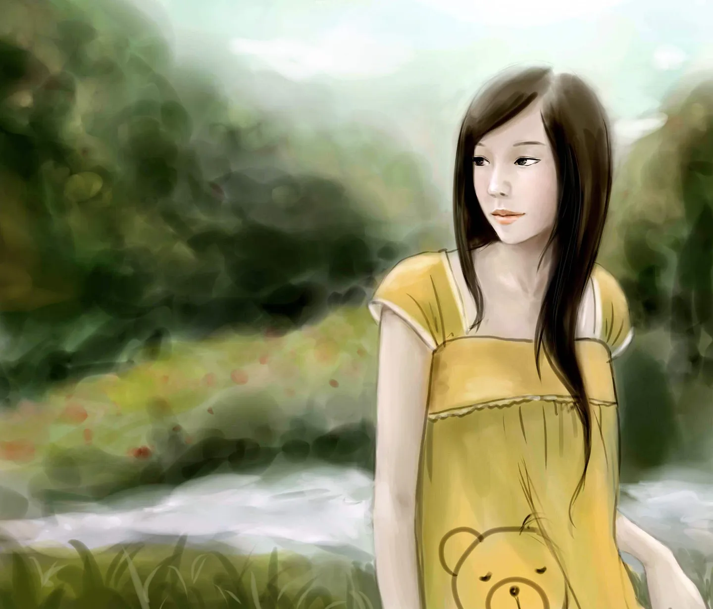 刚尝试画背景,以前一直不敢下手的,其实画的也是糊里糊涂的,想画条小溪也没画好……