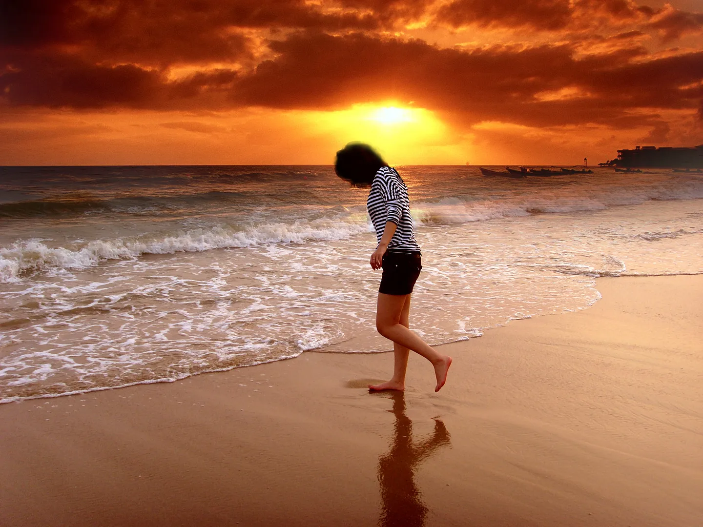 头发部分的模糊是故意的,被阳光直射造出光晕的感觉,海天相交本就是一线!原图也是如此,这是自然规律!不过还是要谢谢晴天的建议和支持!