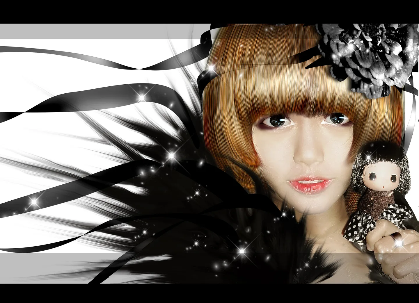 头发颜色应该与插画元素调子匹配,那样会显得更加有冲击~