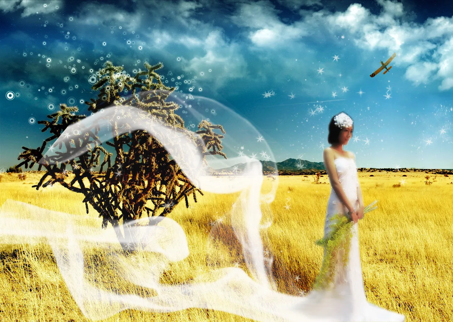 喜欢背景和白纱飘动~