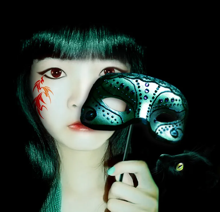 已指定。 你看能不能把手里拿的换成半脸的面具...不行的话你看着办吧,随意发挥。不要改变脸型。@_@ 3Q~