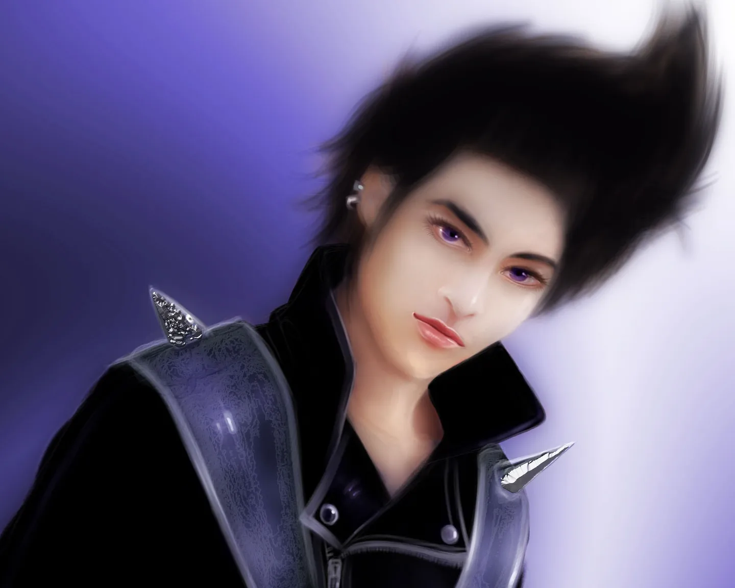 (Yes. Purple eyes, silver shoulder blades and black hair. or you can make two versions)