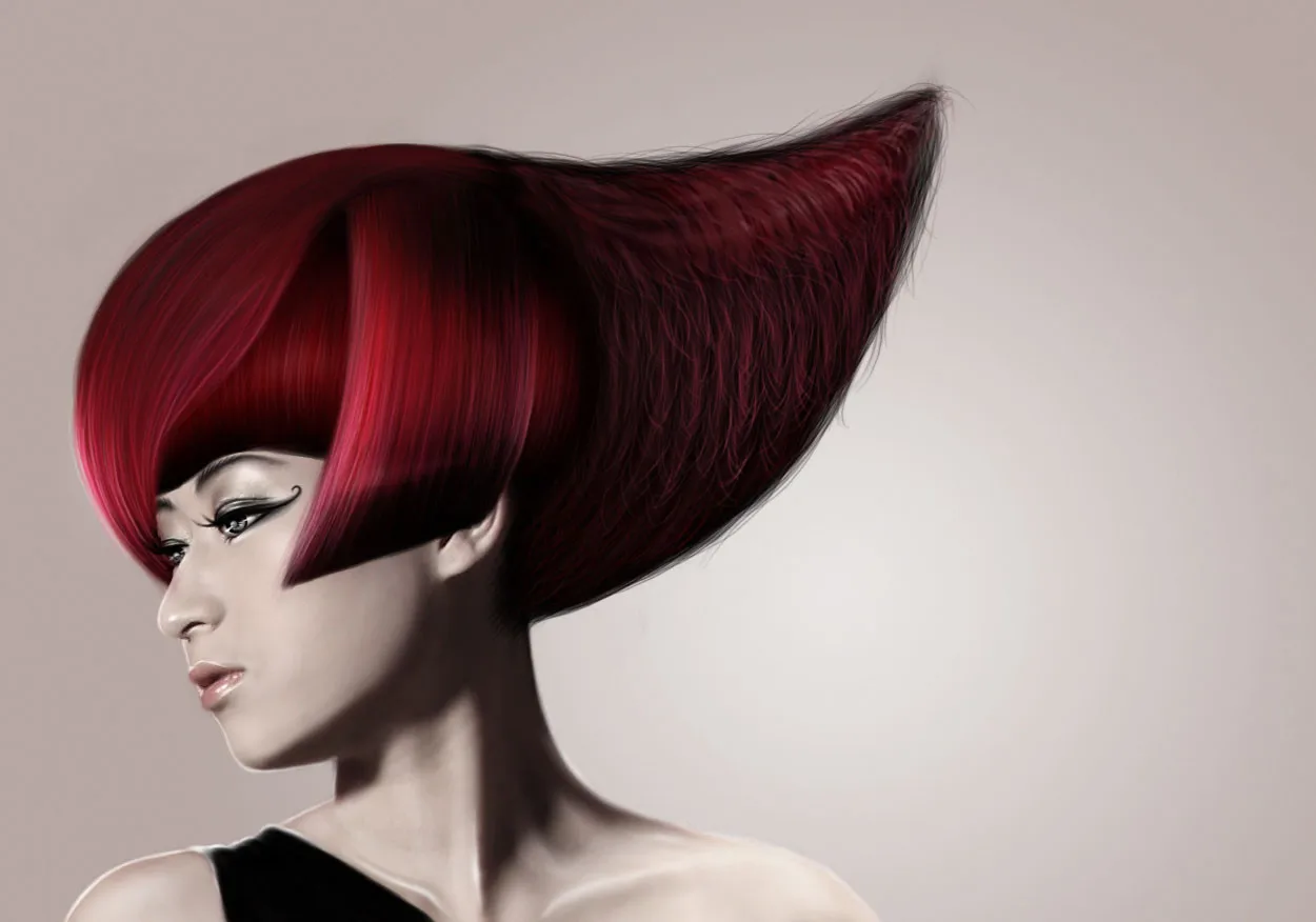 这头发好“牛”角,哈哈。原图的头发也好牛,不过修完后看起来好漂亮 ,做发型的广告,哈哈。这个好