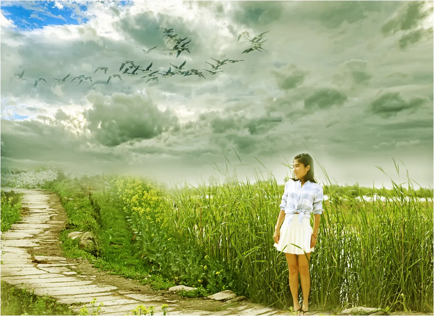 整体看还可以,人物站的地方与小路不和,