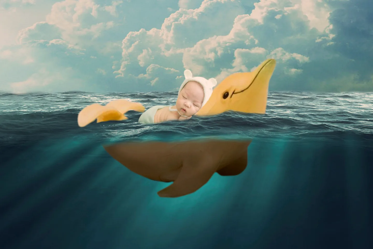 这个修完更好看了啊,碧海蓝天,小孩骑着萌萌哒的海豚遨游,好可爱