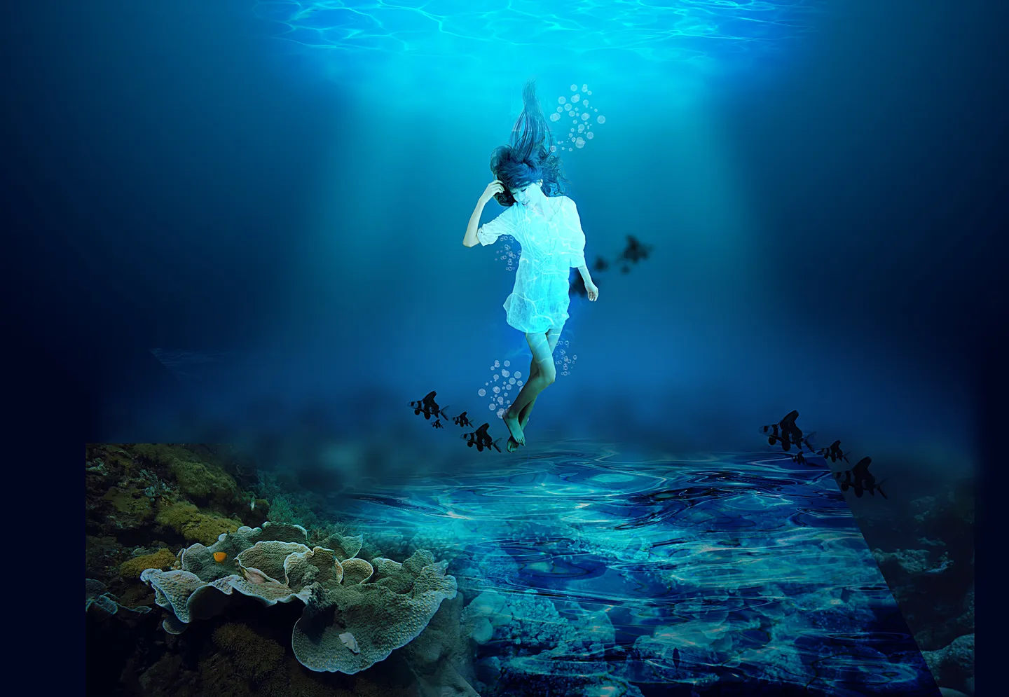 要深海海底的感觉或者天堂感觉。或者掉到水杯里的感觉。期待有爱的精品。 初学者不要接片啦,其他有经验大师随意。谢谢啦~ 背景全换掉啦 基调:典雅唯美 艺术化:深度艺术化