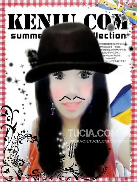 给人物换一个好看的背景 可以的话帮我加个帽子 还要可爱的小胡子 艺术化:轻微艺术化 艺术化:保持真实性 基调:欢悦明快的 用途:娱乐