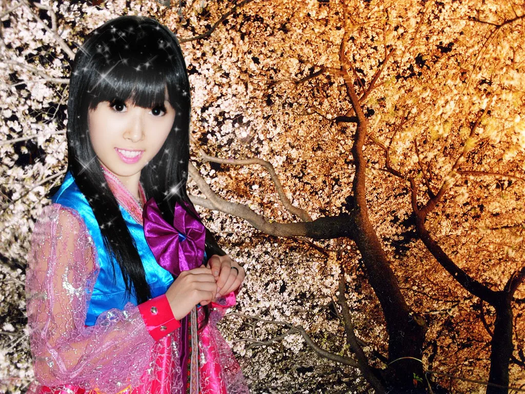 希望换个樱花飘落的背景,坐在樱花树下之类的。唯美一点的。 艺术化:轻微艺术化 基调:典雅唯美 用途:家庭纪念