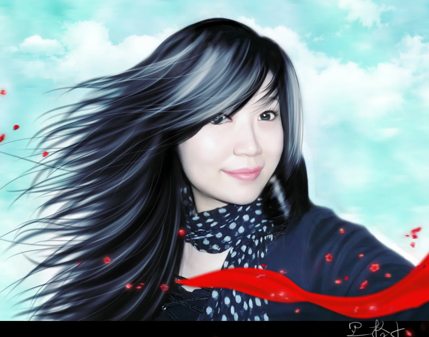 手绘不错啊,头发画得很好