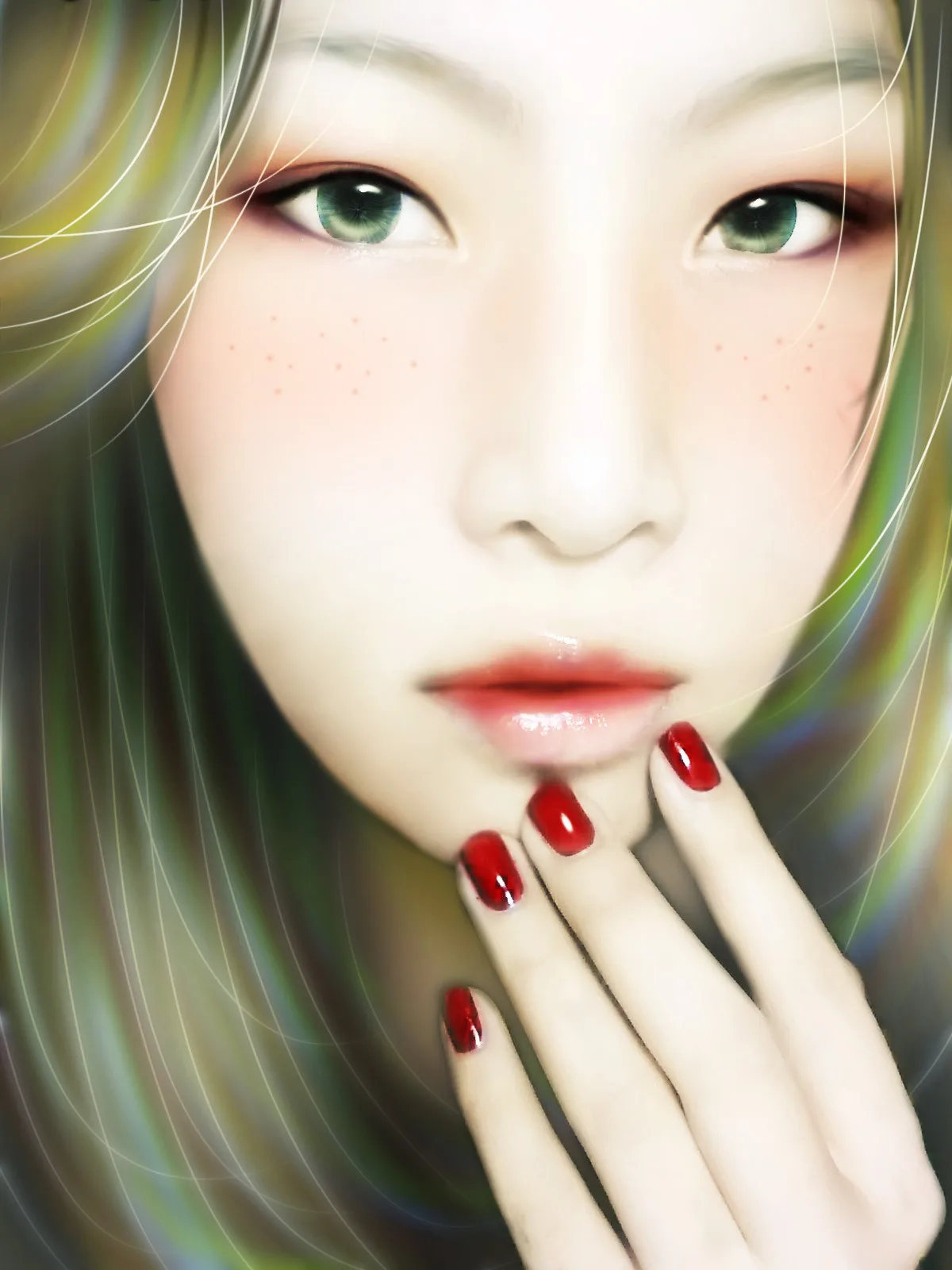 发丝很美,眼神很魅,还有大红的指甲,真美,