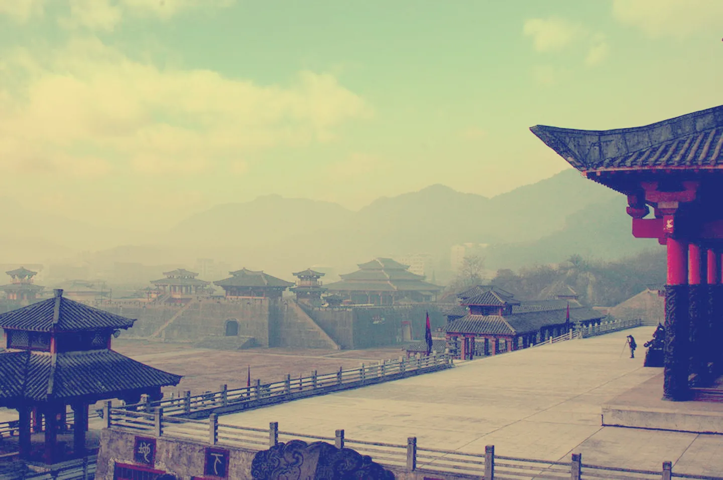 亲,俺写错了,脑子里当时光想着去宋城的事情,这是横店啦,横店的秦王宫