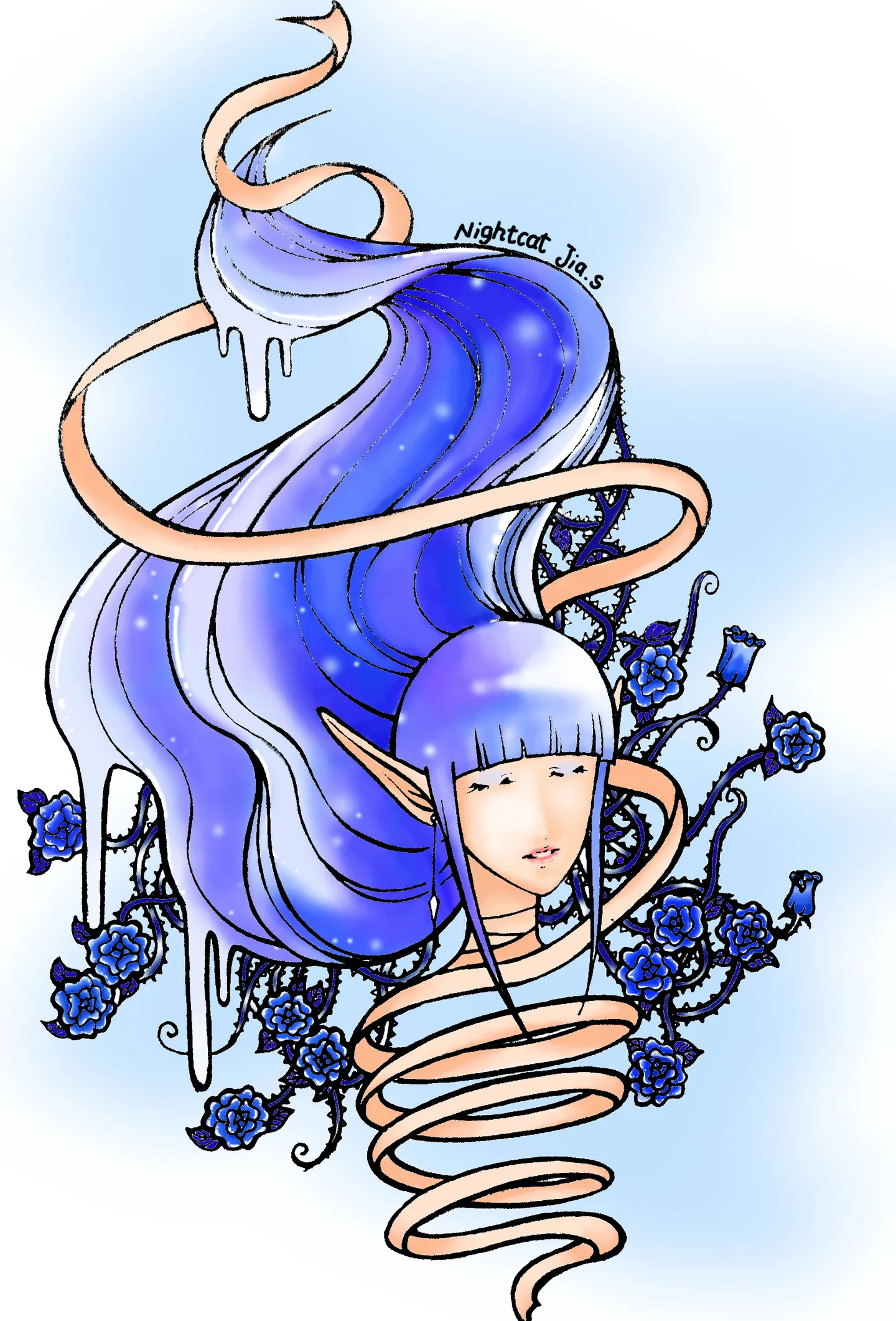画出来的整体感觉很好 蓝色系 非常冷艳