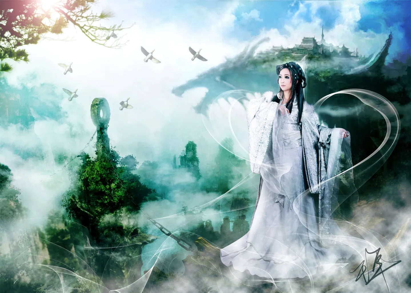 求扣图到仙一点的背景中,有点雾的感觉的