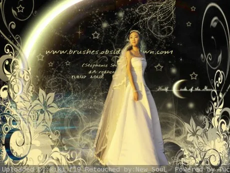 美化人物脸部,最好能够把纱蒙到头发上,并且飘起来。突出人物,换个浪漫的背景。多谢大师了