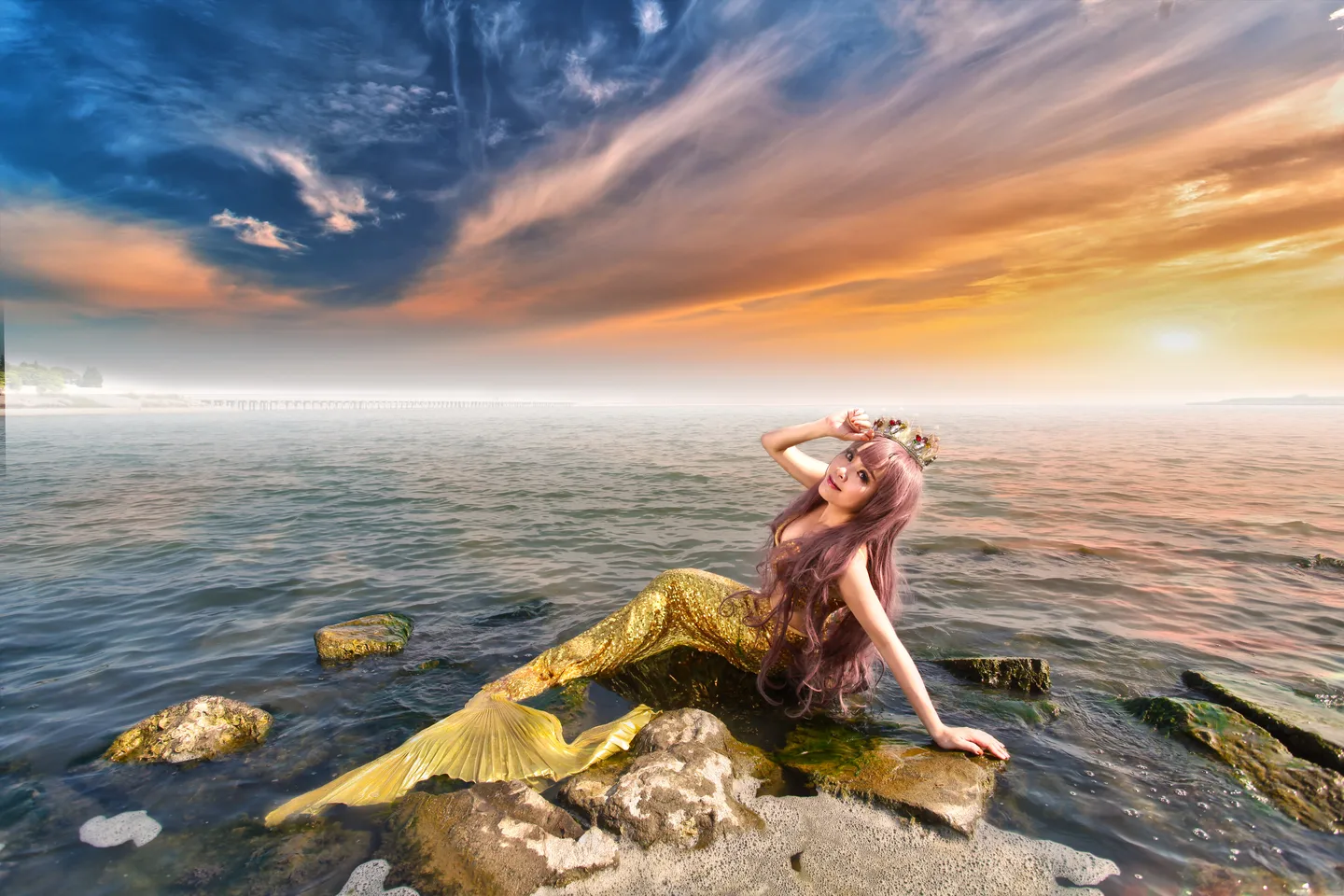 天空的色调和人物更契合啦,海面也仿佛流动起来,