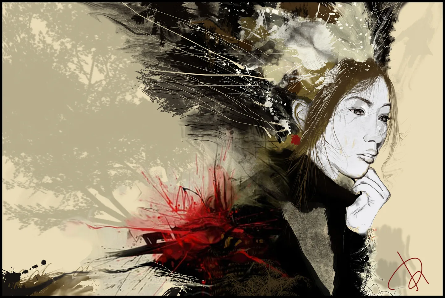 就是先画人,然后再乱图,当然层次还是要有的。笔刷用淡点,恩,还有配色,要突出一两中颜色才不会很乱。