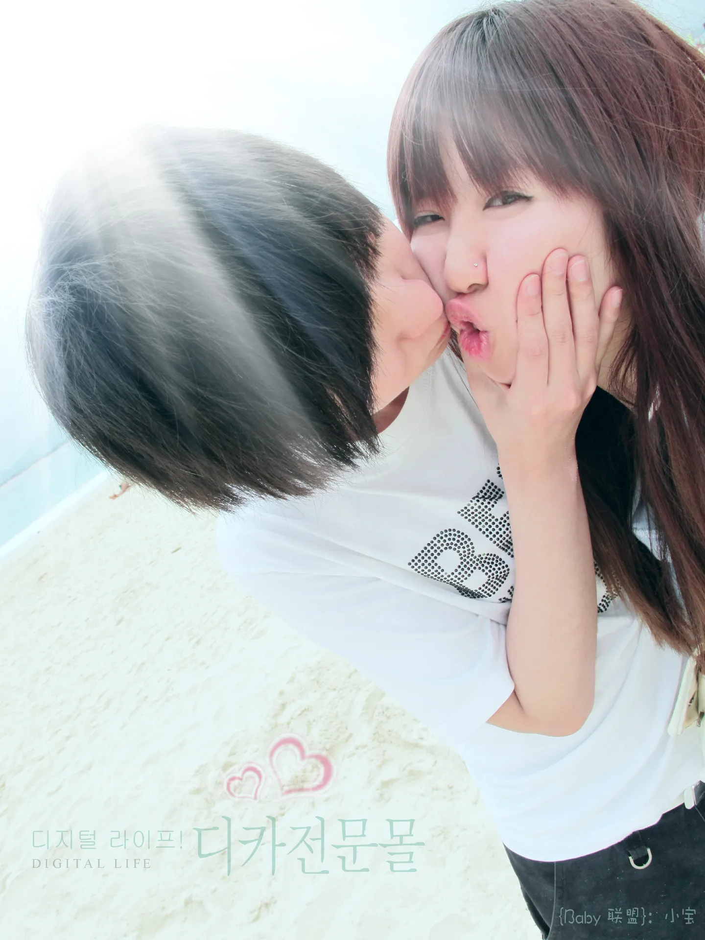 美化人物脸部 弄个温馨一点的感觉。加一些可爱的字或者小东西也可以~ 或者弄成漫画类的也OK。 嘎嘎~