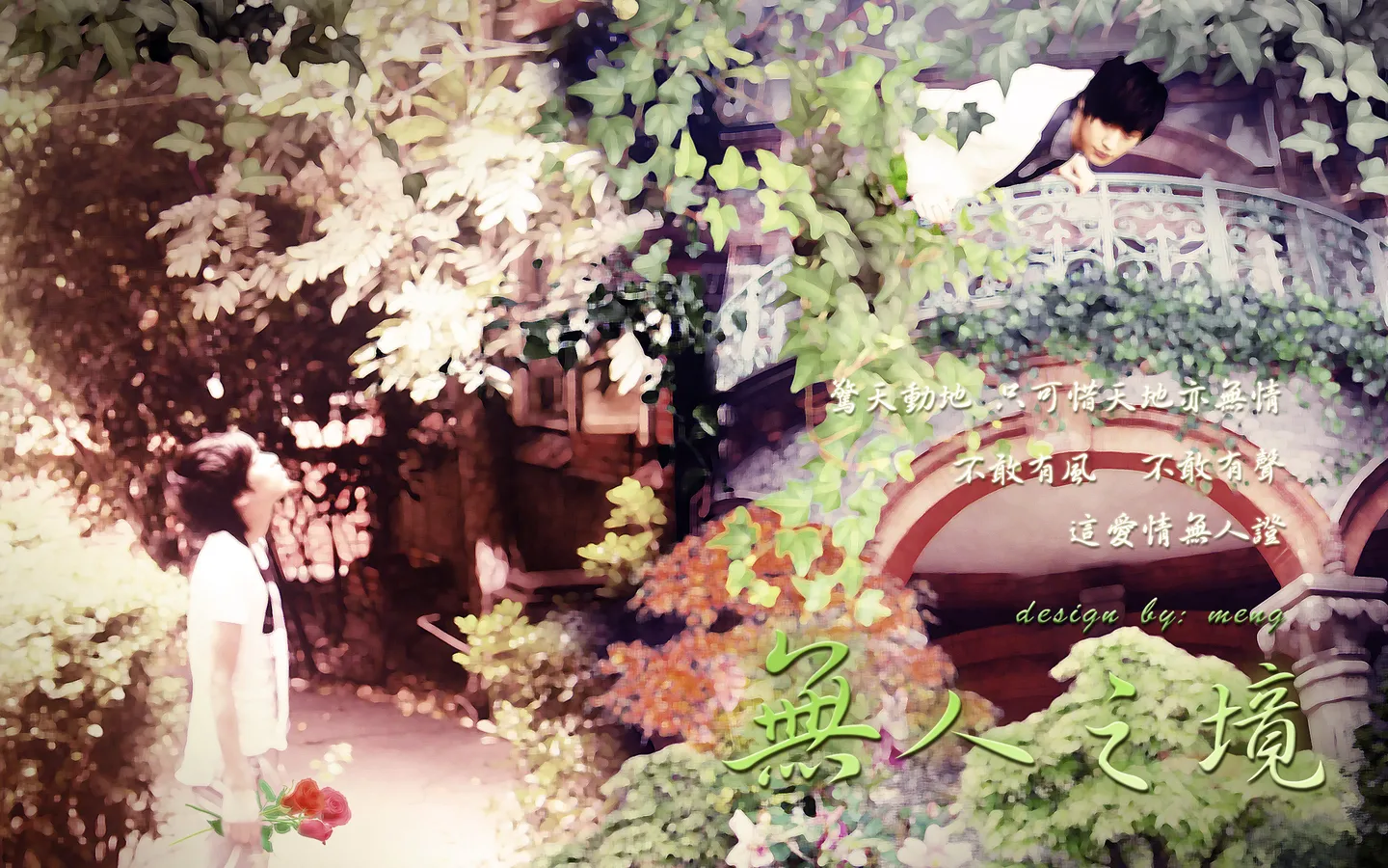 希望手绘或者合成,一个在楼下,一个在楼上的这种感觉。 有爱的大师接吧~ 基调:典雅唯美 艺术化:深度艺术化