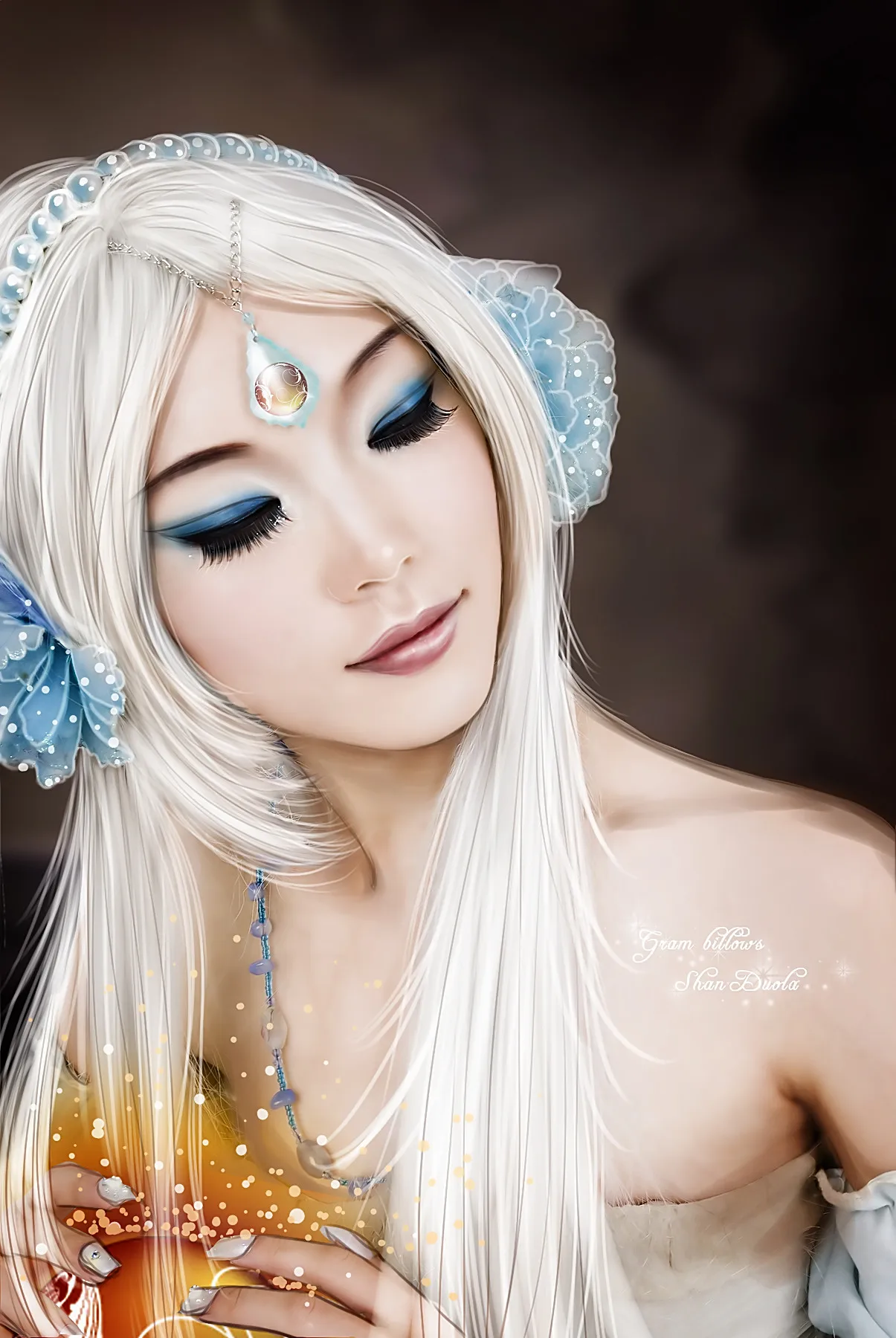 还有额头饰品上加的那个球有点奇怪,不知道做成梭形或者椭圆形会不会更协调点?