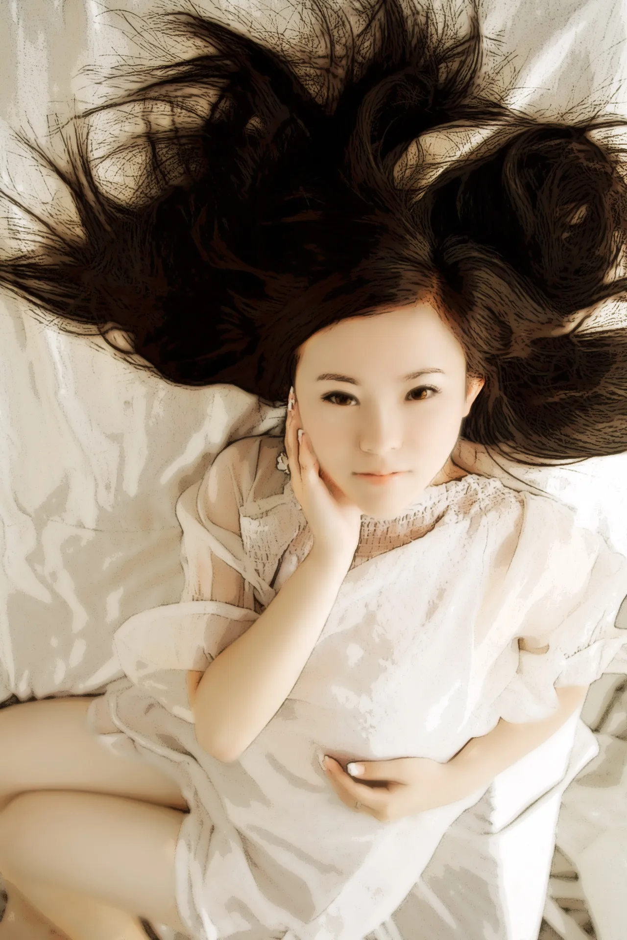 人躺下 脸会塌。。躺着都好看的女人。。。