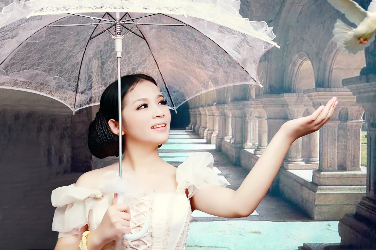 去设计,漂亮的背景。发型也可以改的。。头饰也能改。我其实不太喜欢这根绳的质感,变成金属的更好。。发挥想象。。我认为空白的背景比较好发挥。。大师OR未来的大师,有信心有想法的都来吧,接受练手~ 基调:典雅唯美