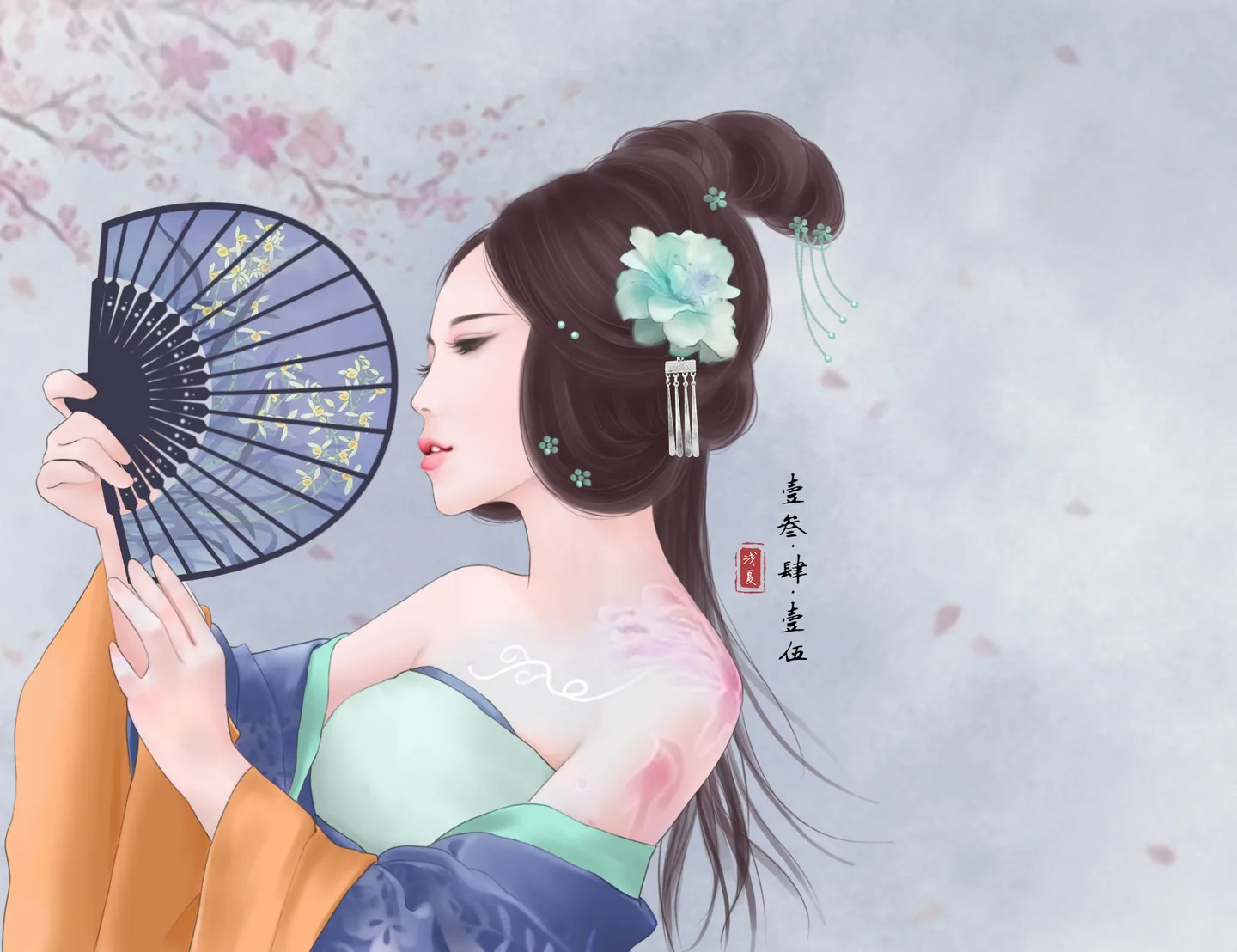 换一个好看的背景 基调:典雅唯美 手绘