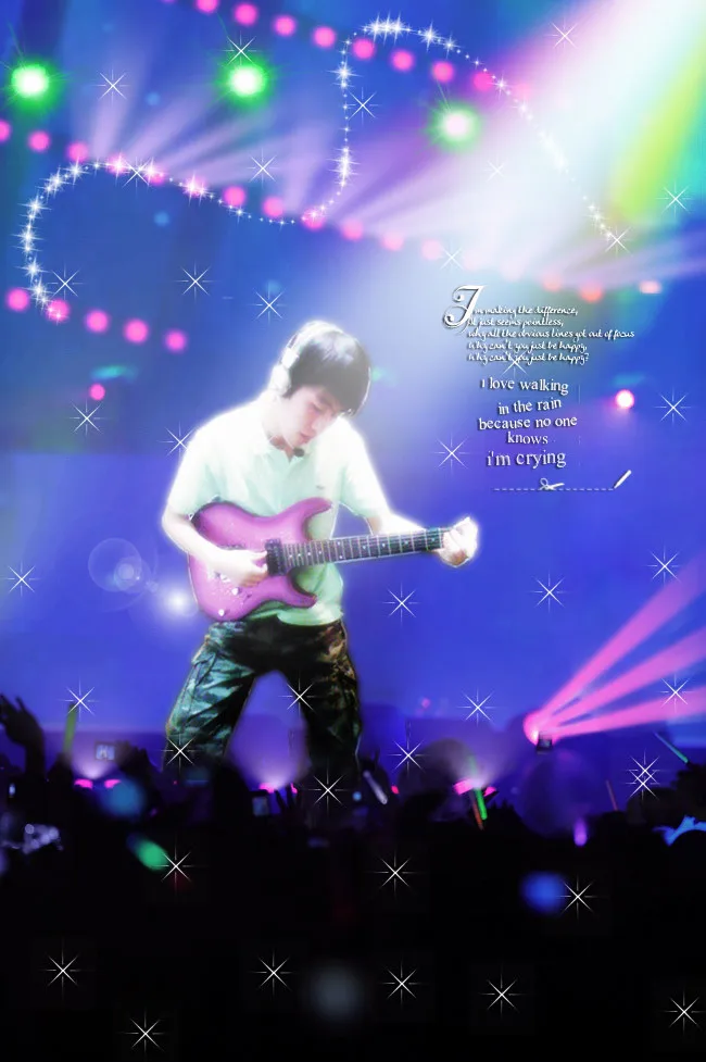 请高手帮忙把背景换成演唱会的感觉,突出本人 谢谢拉 用途:娱乐 基调:严肃冷酷