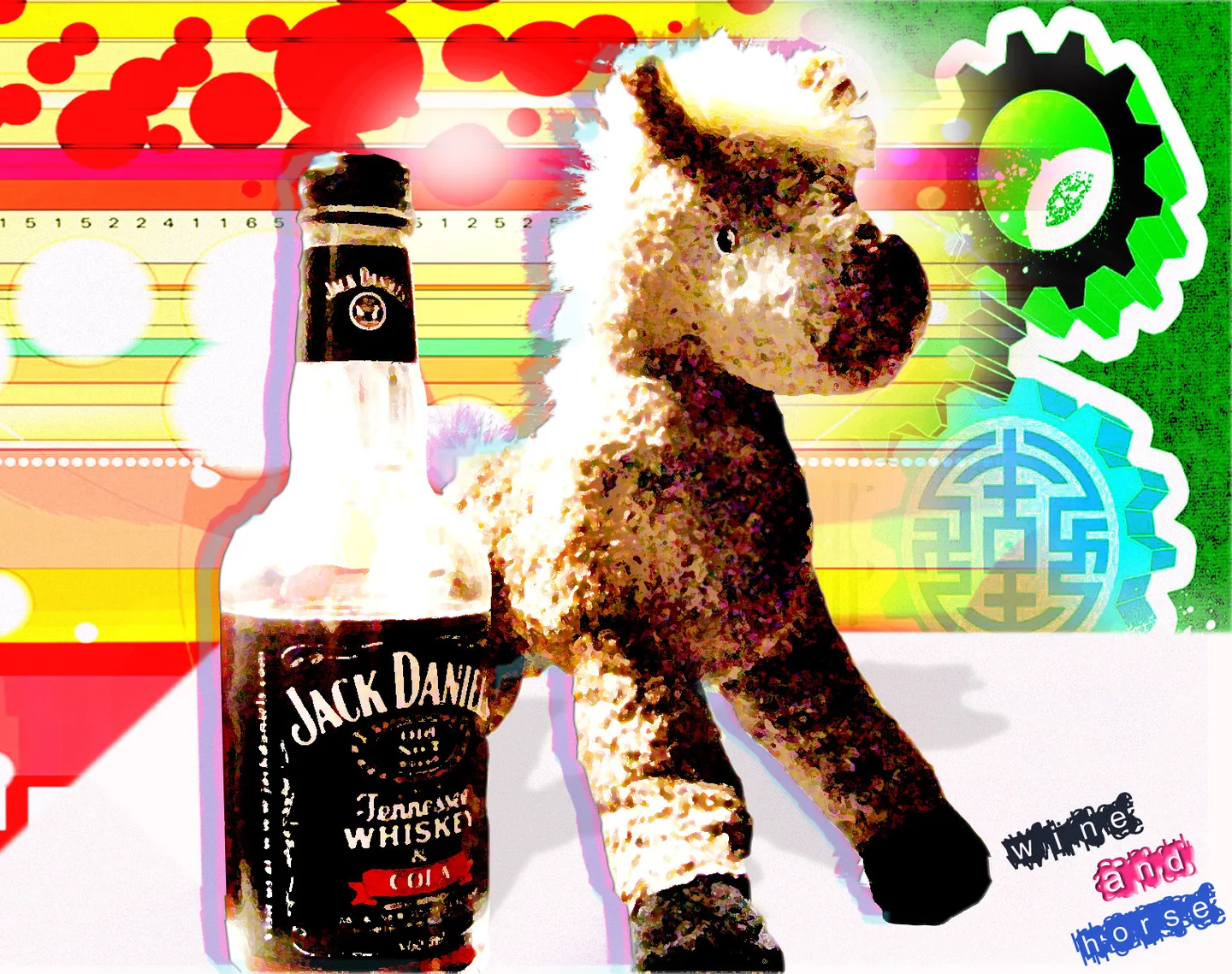 嗯,你上次帮我处理的熊超级喜欢,所以这次还是玩具。我只要求保留酒和玩具马。背景很乱,可以切了或者怎样。然后麻烦把背景处理好一些,拜托拉!