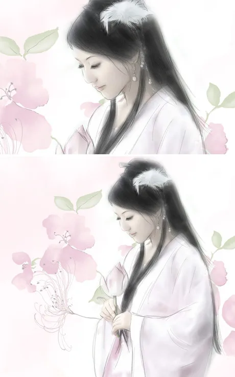 求手绘,毛糙的头发修一下。。。 美化人物脸部
