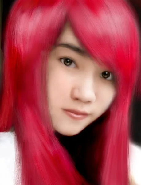 你把头发夸张用了亮度阴影~~~脸部当然也要同步啊~~~不然就像戴的个钢盔~~~脖子也没黑到纯黑色啊~~~我就是说说~~你参考一下吧~~~