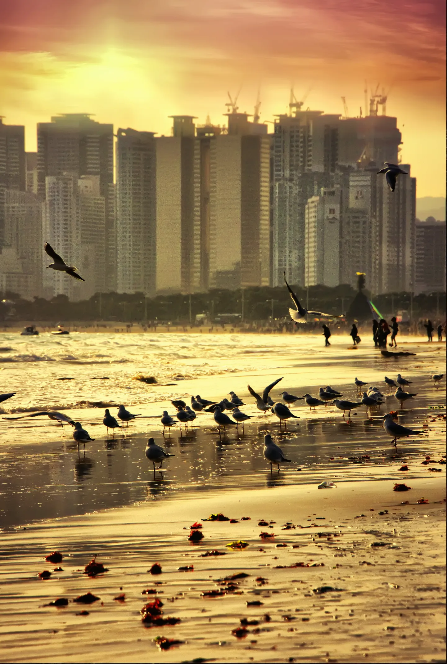 傍晚时分海鸥四起!呵呵 作图速度挺快的