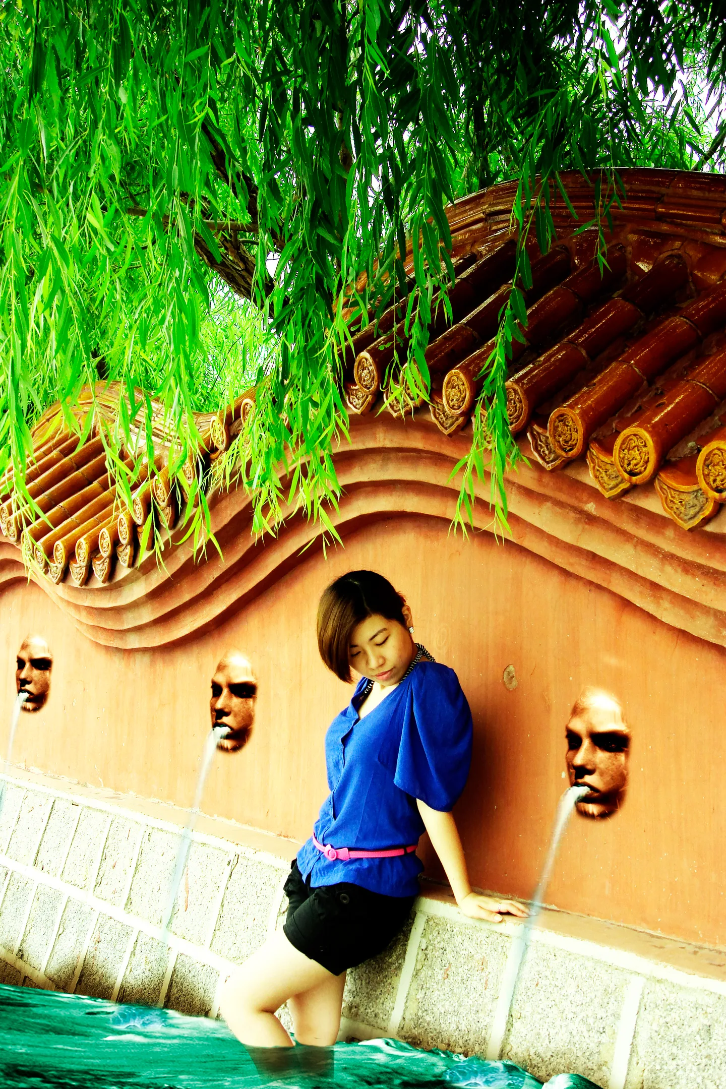 麻烦哪位设计师帮我处理一下,希望美化背景,要真实的感觉,人物要瘦腿,谢谢了!
