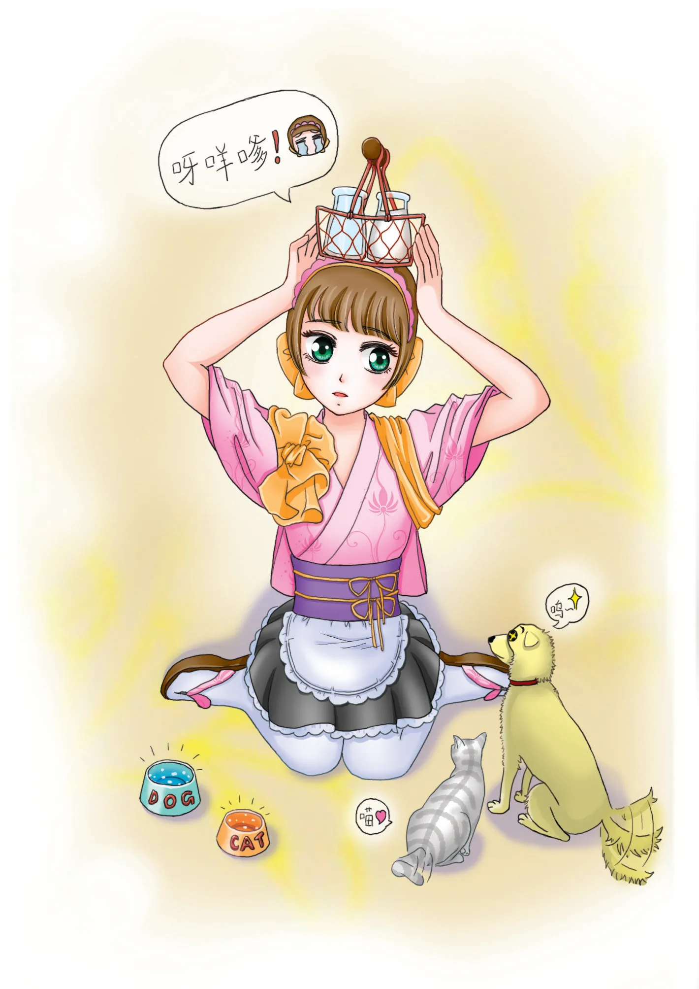 嗷嗷 和服下面变成女仆装了 哈哈哈 太有爱了~~ 嗷嗷嗷 好喜欢啊