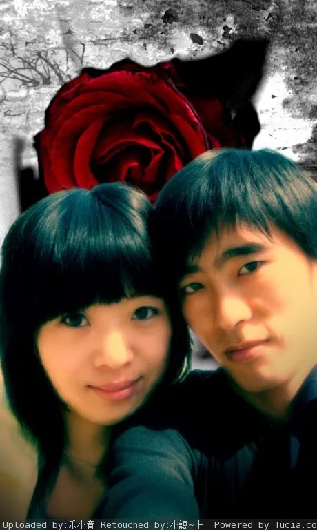 这张自己用光影做过。自己很笨做不好。希望烘焙师可以把女生的脸变小变对称点,眼睛变一样大,男生的脸也给美化下。加个背景。做的简单唯美点。其余的可自由发挥。照片被我糟蹋的有点糟糕,希望烘焙师费点心哦。。