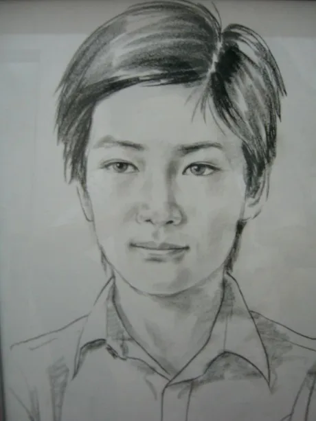 这张图是我的素描画,我用DC拍摄下来后的小伙,因为有玻璃框,仔细看会发现有我拍摄时的景象,想去掉它,而且图片比较黑,需要亮些。还有就是处理好这些后它还是一张黑白素描图,想让它艺术些,不要这么单调,当然要是能把素描画还原成类似真人就更好了,呵呵