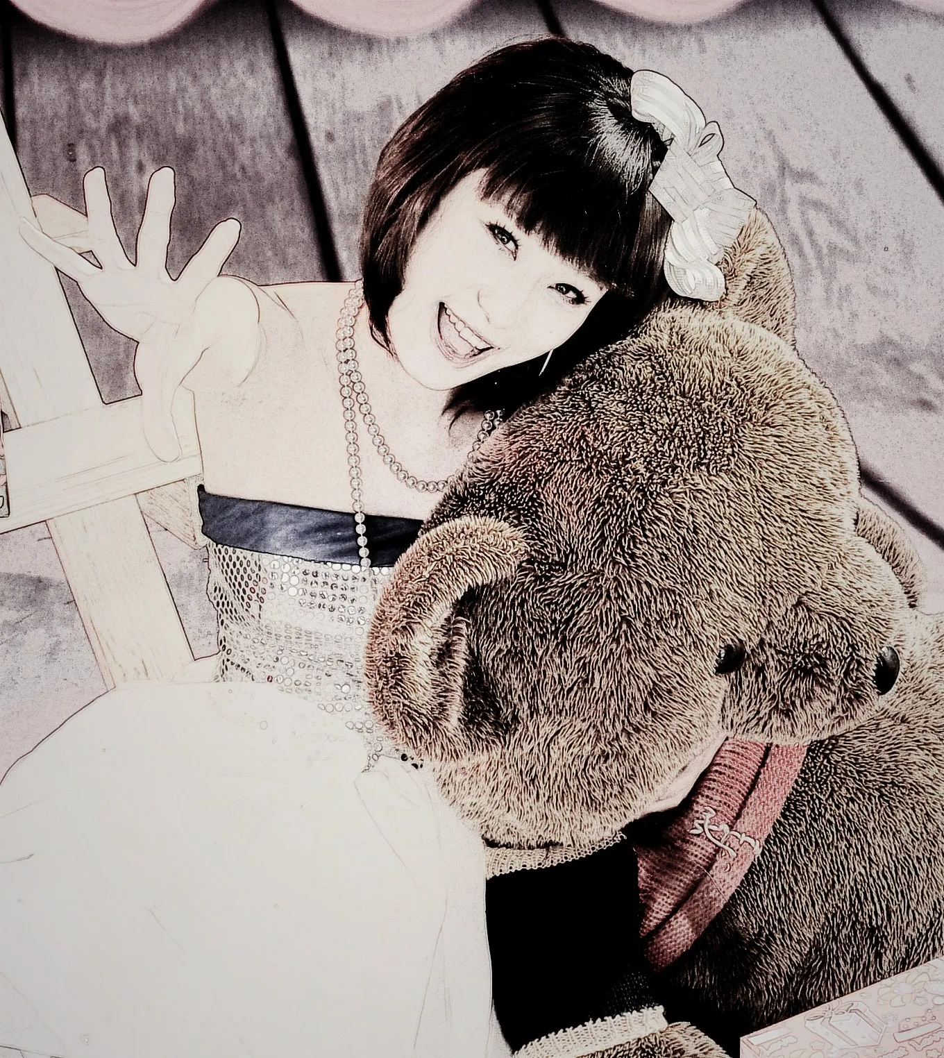 要卡通版的。。 可爱的 玩偶不能比我更可爱~照片有点大,希望能突出我自己来 镜头拉近一点,用途是家庭纪念,基调是欢悦明快的,深度艺术化!换一个好看的背景!
