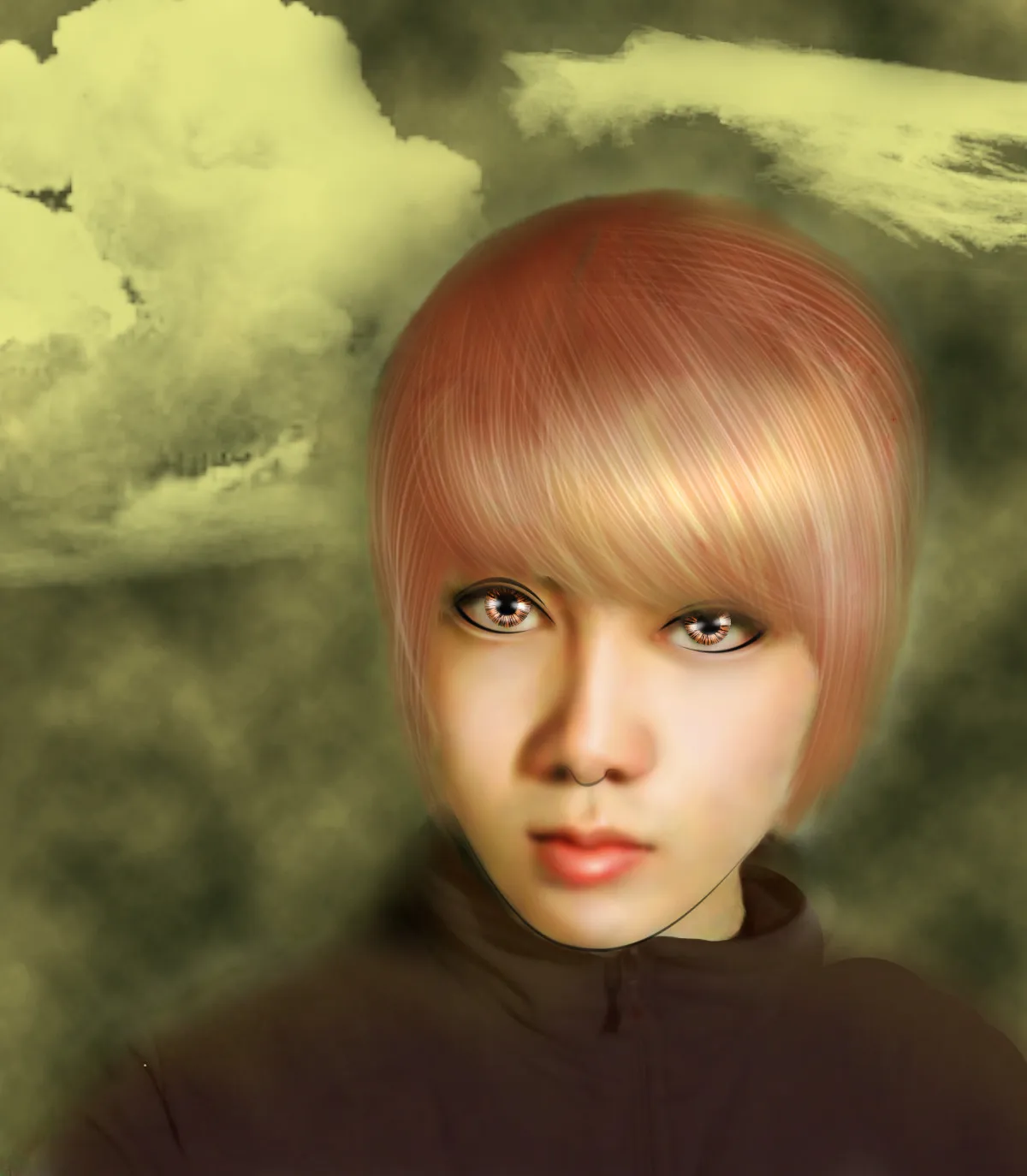 我觉得衣服保持原样,头发不要这么艳的颜色,背景嘛,换个简单的,白色系~~~怎么样? 谢谢