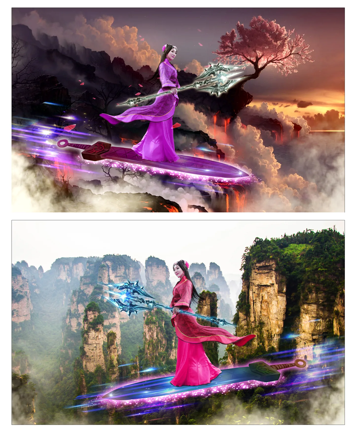 剑也有,我再给你合个酷剑。衣服的下摆改动了,还有头发,不然缺少动感。